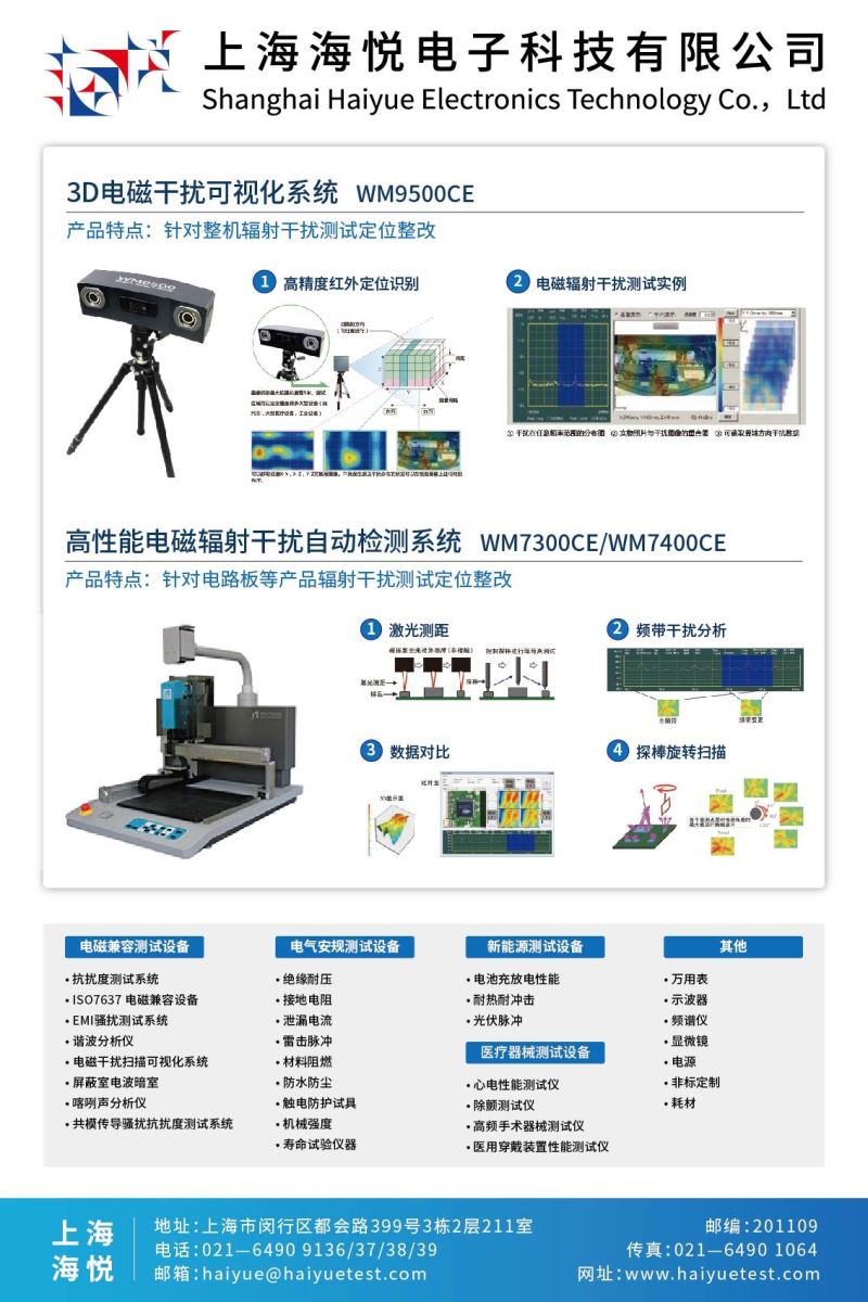 上海海悦电子科技有限公司成立于2006年,自成立至今一直专注于安全与电磁兼容试验设备的研发、生产和销售,公司的主要人员具有近20年的从业经历,有着丰富的实践经验,已经成功给多家大型认证实验室提供过测试设备的规划以及相应试验设备供应,公司自行生产数百种各类安规设备、试验仪器,并承接非标定制试验设备。公司同时代理销售国内外多家安规设备厂商,包括:美国COMPWEST、意大利ATS、美国EDD、中国台湾鲸扬、日本SOKEN、日本KIKUSUI、日本YOGOGAWA、中国台湾艾普斯、日本SOKEN、日本ESPEC等等。 公司在电磁兼容领域提供完整的EMI与EMS设备,代理供应包括欧洲EM-TEST、意大利ATS、德国FRANKONIA、瑞士EMC-PARTNER、日本MORITA等众多厂家,同时公司也是北京科环在华东区销售网点。 完善客户的试验装备、提升客户的测试水平、增加客户的满意度是我们的努力目标。海悦会是您最优的合作伙伴!