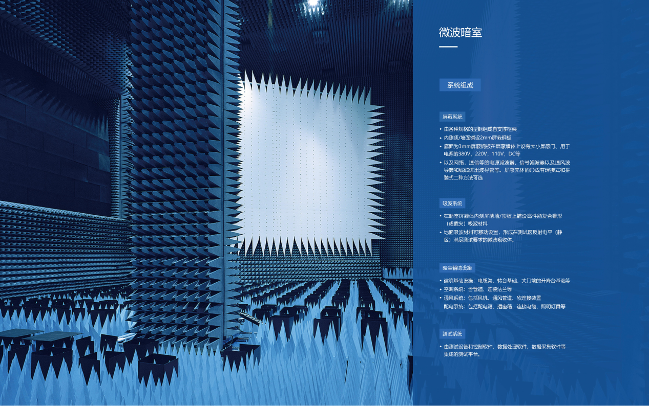 公司致力于为党政军机关、科研院校、电子通信、航空航天、国防科工及保密信息安全等领域,提供高性能的微波暗室、电磁屏蔽、吸波材料和 EMC 测试整体解决方案。
