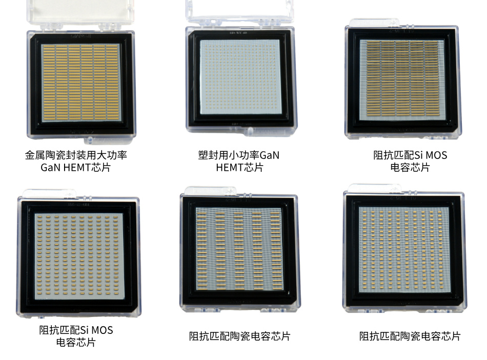 氮化镓(GaN)射频功放芯片及配套电容芯片,频率DC-18GHz,工作电压5-70V,广泛应用于5G通信基站、射频能源、通信干扰等领域。
