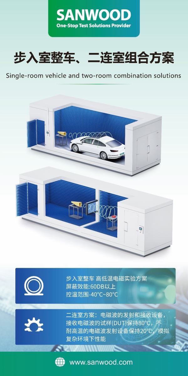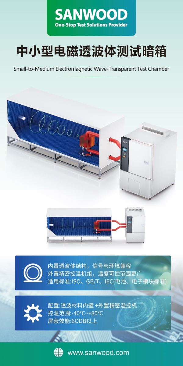 三木科技顺应行业测试一体化趋势,率先将环境试验技术延伸至电磁兼容领域,形成“环境 + 电磁”融合测试新体系。本次展会将重磅展示 1立方高低温电磁测试箱、中小型电磁透波体测试暗箱及大型电磁暗室精密控温系统,助力整车与智能装备实现更高标准的电磁与环境综合验证。