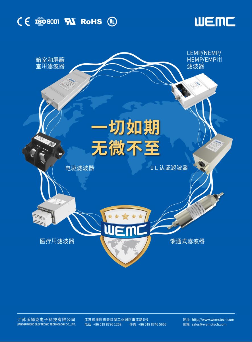 沃姆克公司自2010年3月成立以来,致力于电磁兼容领域滤波器类产品的研发和生产,是国内外电源滤波器的主要生产商之一。产品应用领域涵盖电波暗室和屏蔽、TEMPEST数据安全和HEMP防电磁脉冲、医疗和电动汽车等。在电波暗室和屏蔽领域,可提供能在10KHz-40GHz的阻带范围内,衰减大于100dB的各种EMI电源滤波器和信号滤波器。电源滤波器的最大工作电流可达5000A,最高工作电压可达31.5KVAC。