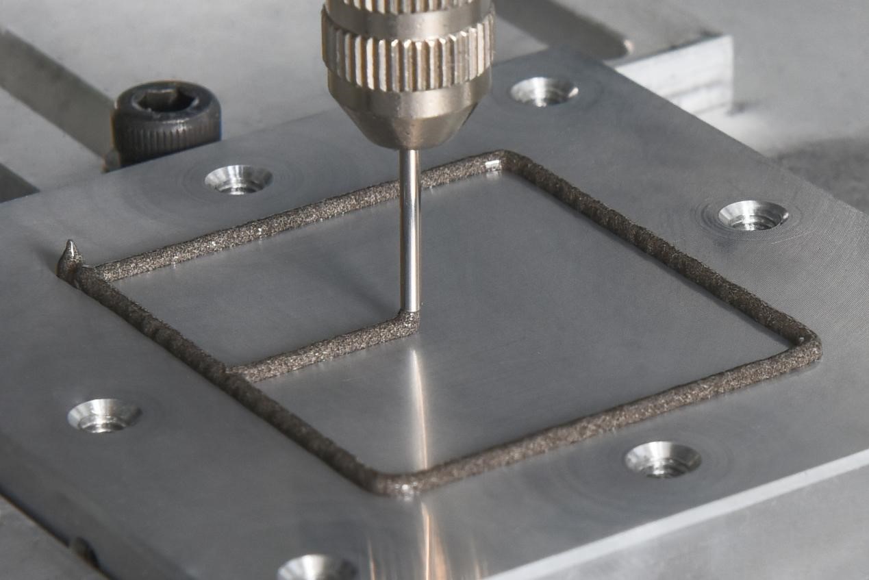 产品一:DS-NC45HS :单组份镍碳导电胶水,填充了特有的 Ni/C 导电颗粒的高温固化的导电硅胶,在 150 ℃温度下,约 30min 固化完全,固化时间随着固化温度的提高而缩短。可用于金属基板。