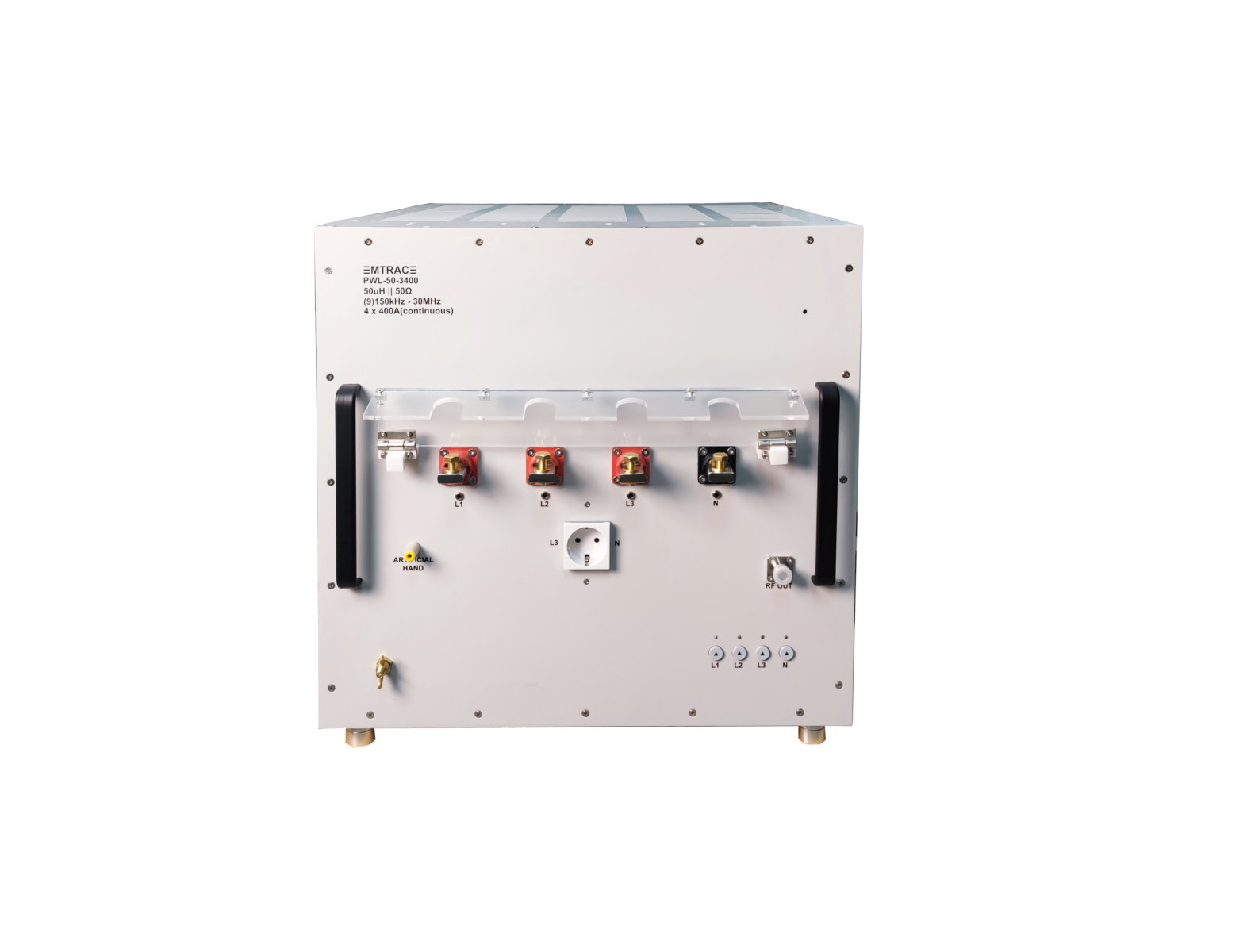 三相400A LISN,测试频率(9)150k-30MHz,标配单相16A插座(单相设备测试无需延长线且能保证阻抗),标配远程控制(USB),可选R&S CTRL控制模块